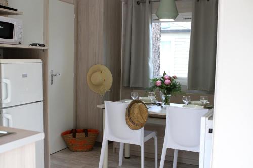 Les chalets et les mobile homes du Camping les Champs Blancs disposent tous d'une salle de bains privative avec une douche, d'une terrasse avec du mobilier de jardin et d'une kitchenette...
